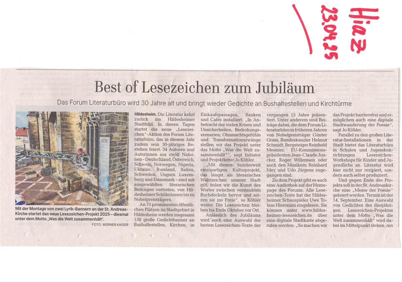 Wir sind den Gedichten in Hildesheim begegnet. Wir haben uns sehr gefreut, dass Poesie so in der Stadt lebt. Bleiben Sie auf der Spur!