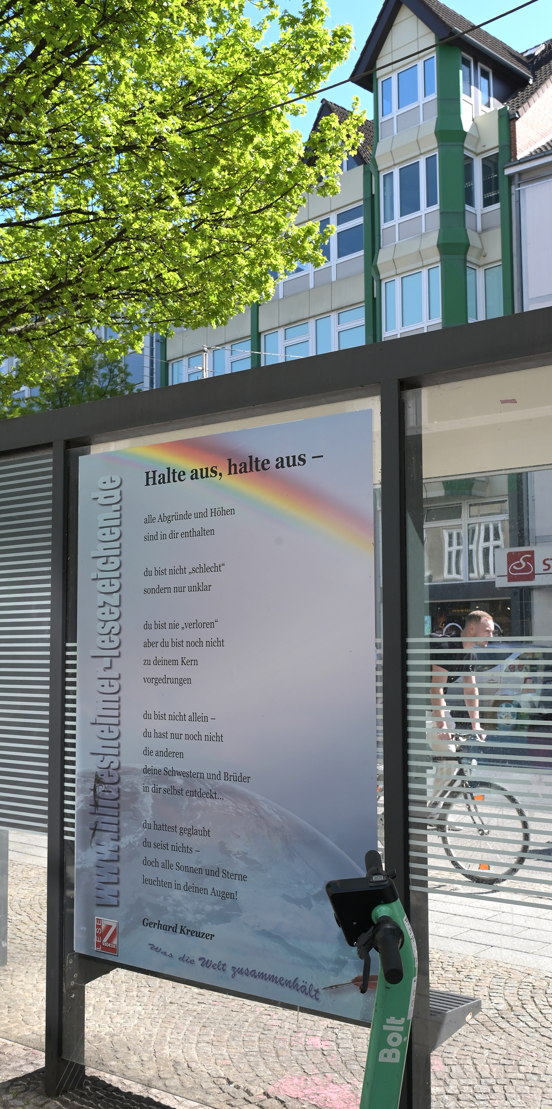 Als Nutzerin des ÖPNV in Hildesheim habe ich an den Haltestellen derzeit immer wieder Gelegenheit, die wunderbaren Texte lesen zu können!