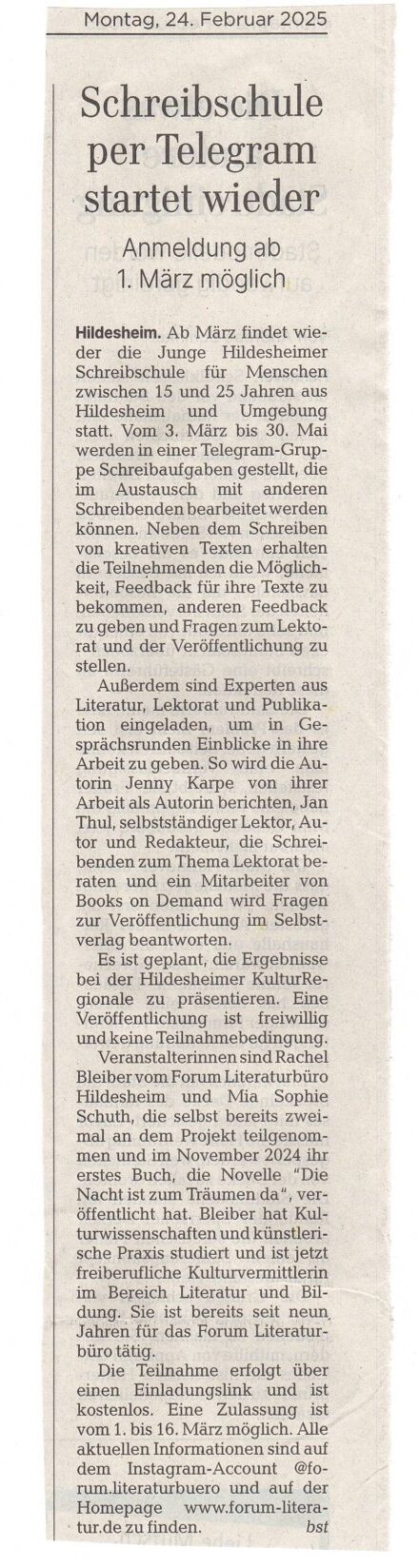 Die Junge Hildesheimer Schreibschule 2024
